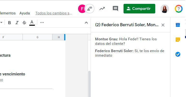 1. Habla con tus compañeros dentro del propio documento de Google Sheets