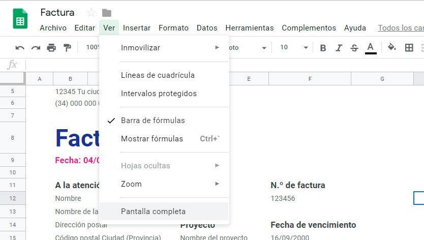 Activando en el menú la opción de pantalla completo, será posible concentrarnos solo en las celdas y de esta forma ser más productivos evitando cualquier distracción que pueda surgir. Para hacerlo, deberías ir a Ver > pantalla completa.